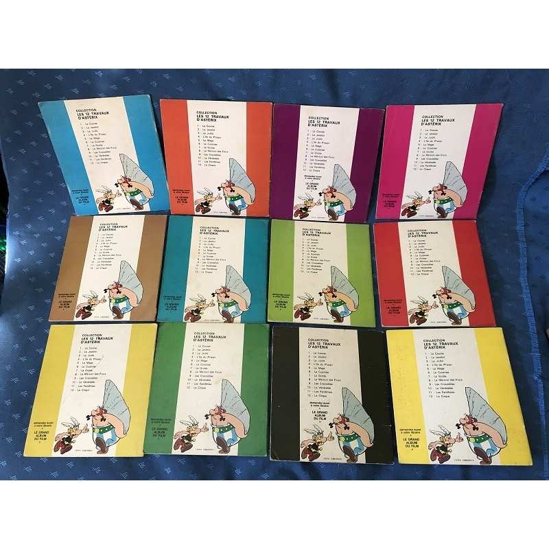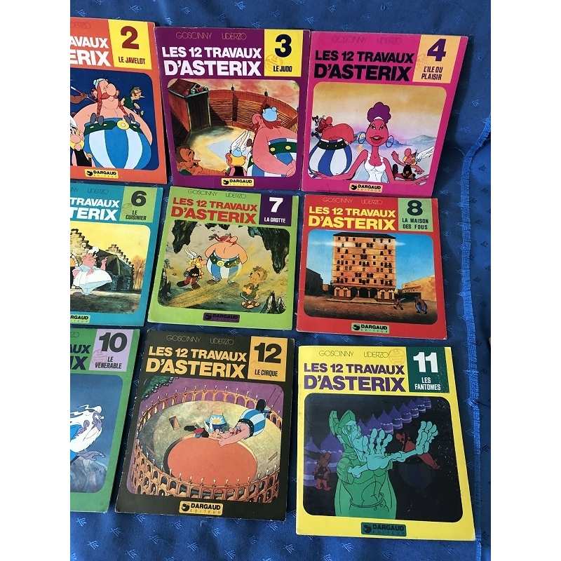 Complete collection of the 12 comics "les 12 travaux d'Asterix" in very good condition, one more or less visible stamp on the number of the comic, an inscription on the 1st page "AS28" and a line on the back of comic N°9, otherwise very good condition, near mint inside.