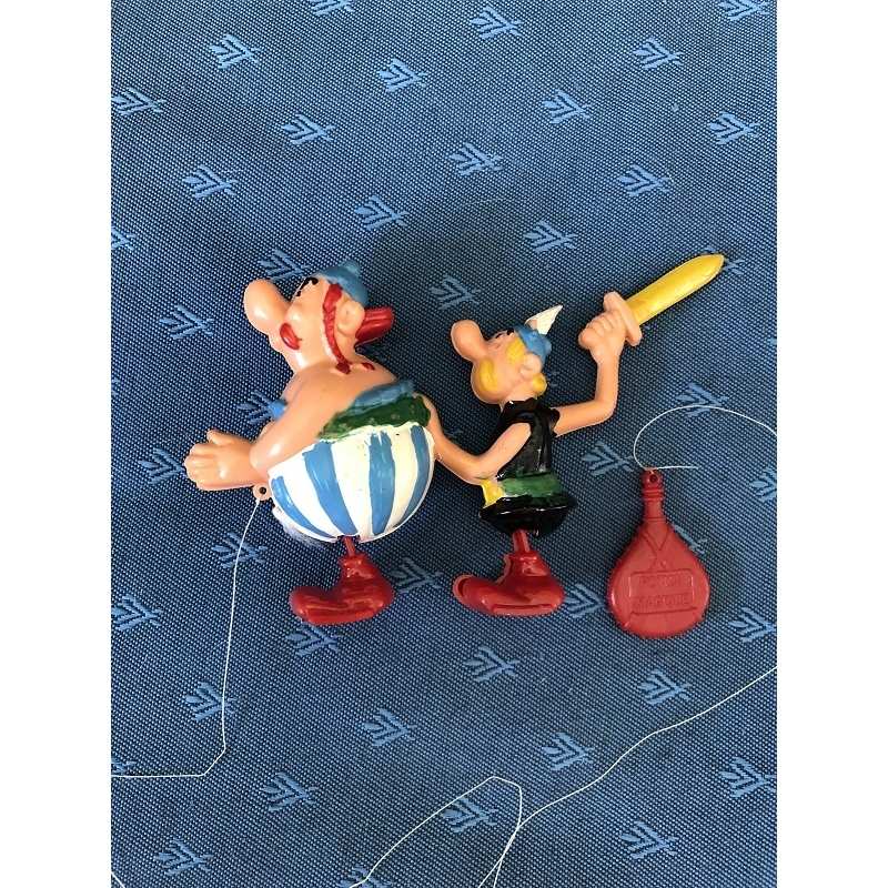 Asterix and Obelix walkers "I walk alone" 12 x 7 cm. It's complete and functional, it's been tested and works properly. Put the gourd (counterweight) on the edge of the table and Obelix and Asterix walk on their own.