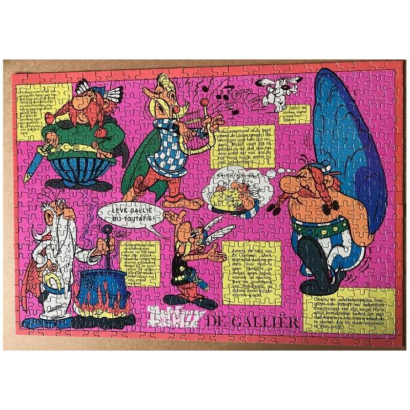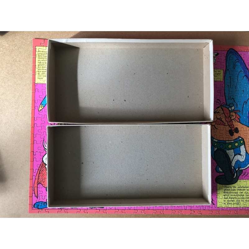 Asterix puzzle rose de 1971 complet (hollande) de 520 pièces. Dimension 35 x 52 cm, usure couvercle boite et 1 coin est scotché. Puzzle de 55 ans Vu sur toutasterix de Marc JALLION en page 36. Le contour est plus orangé .